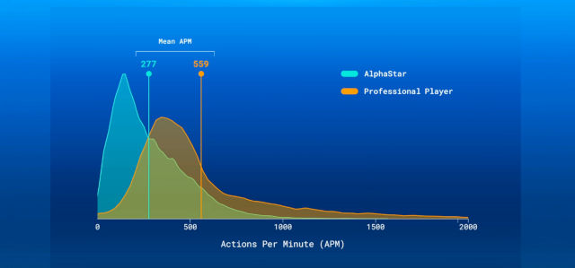 AlphaStar’s average APM is lower than a human player. Photo credit: Blizzard